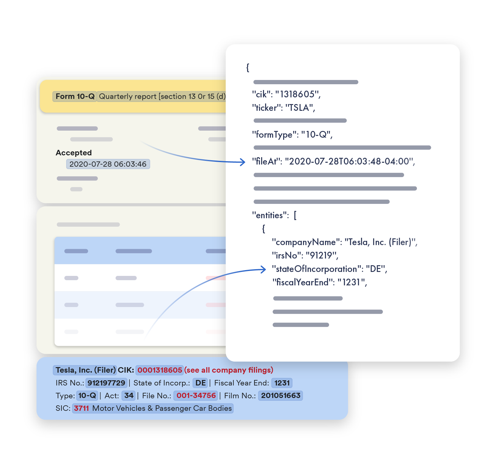 Stream SEC filings in real-time, find and analyze audited and unaudited financial statements from 10-Q and 10-K filings, extract text content from EDGAR documents and convert filings into PDF, Word or Excel.